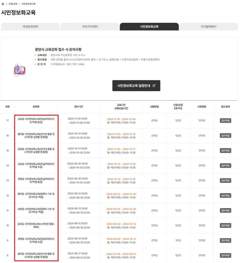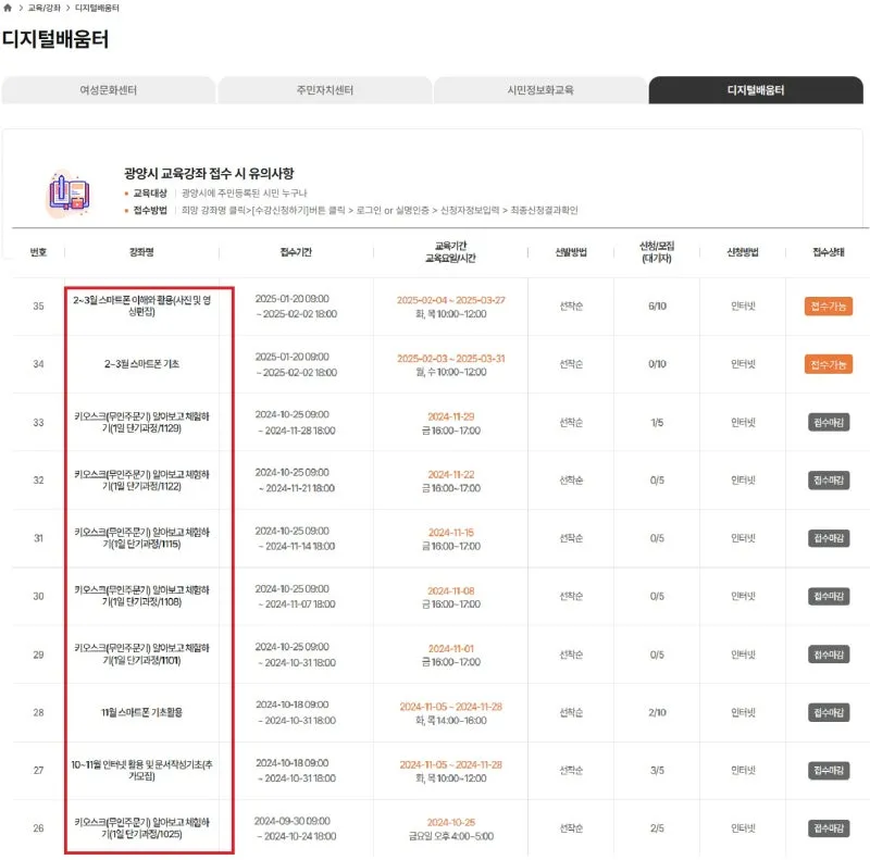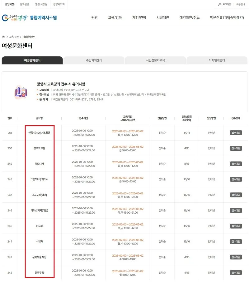 교육 강좌, 체험 프로그램, 시설 대관 등