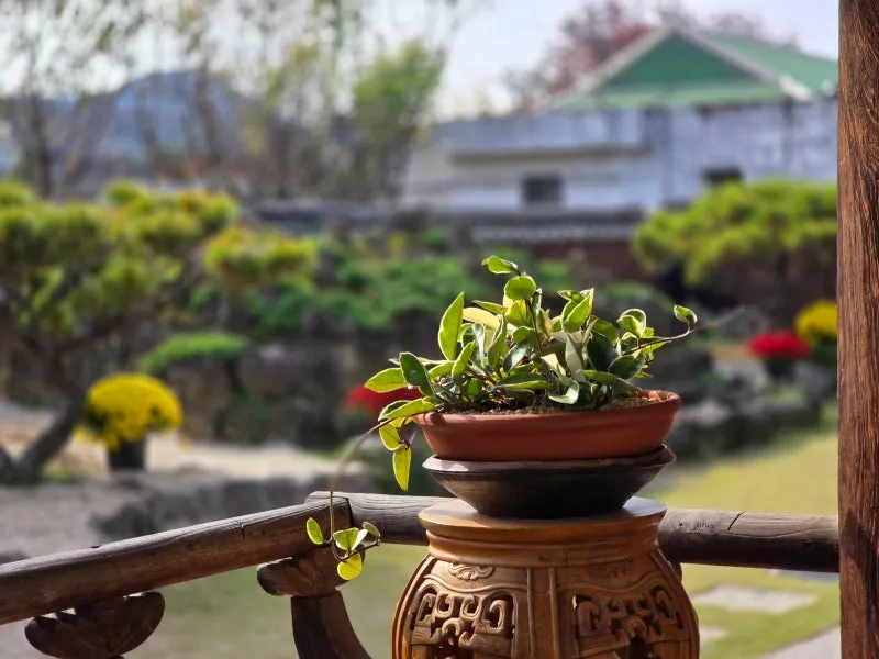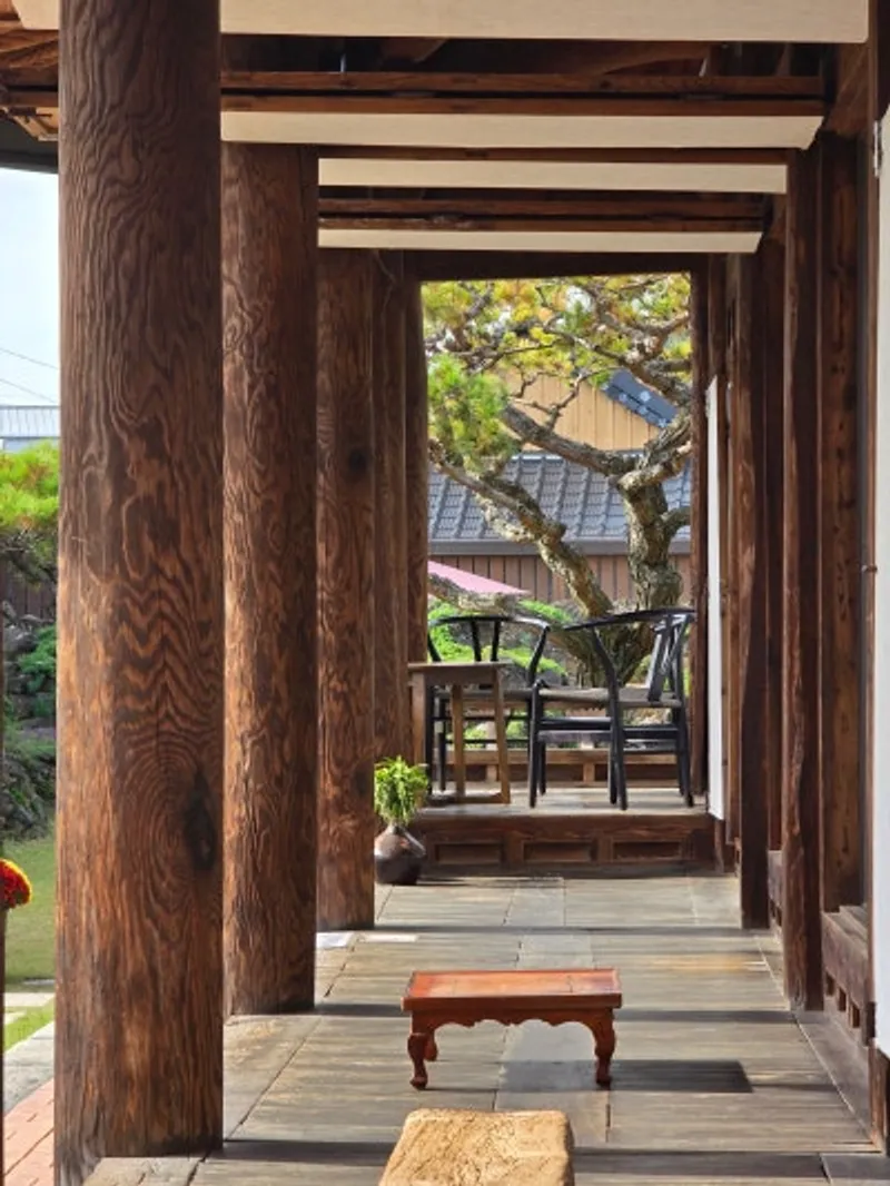 한정당의 숨멋 풍경을 자아내는 스팟중에 하나인 툇마루 끝 누각의 풍류는 포토존 인정입니다. “시간을 품은 너른 누마루에 앉아 한옥의 멋과 품격을 누리며 순창이 지켜온 맛과 격조 있는 시간을 누리시길 바란다”라는 한정당 포인트 이기도 합니다.