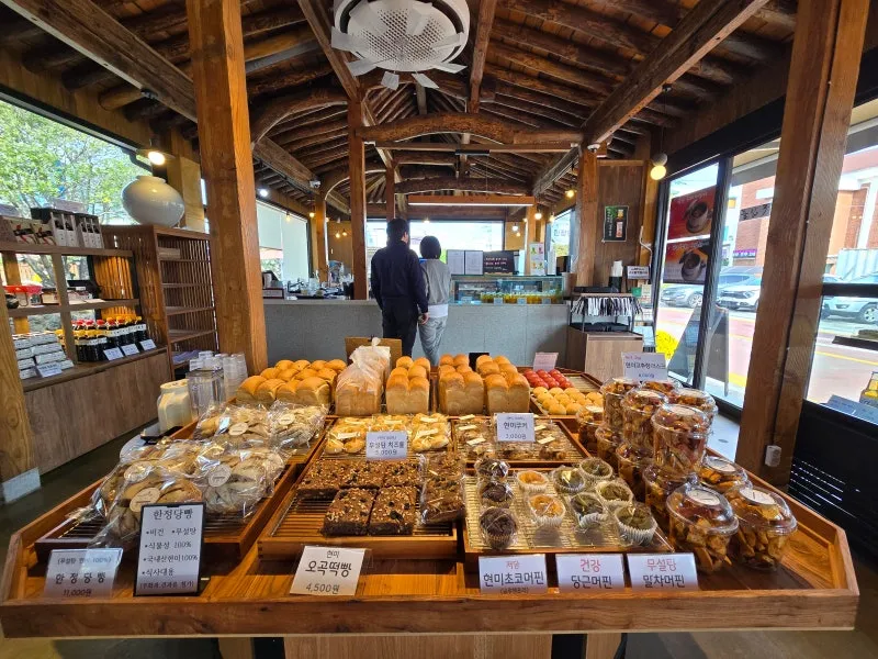 현미쌀 무설탕식빵, 현미쌀 비건식빵, 현미쌀 수제단팥빵, 현미쌀 소금빵 가격대가 다소 높아 보이지만 호젓한 고택의 멋과 계절의 멋을 오롯이 느끼게 하는 정원 멍에 빠져들게 하는 것만으로도 기꺼이 머물러 가고 싶은 공간입니다.