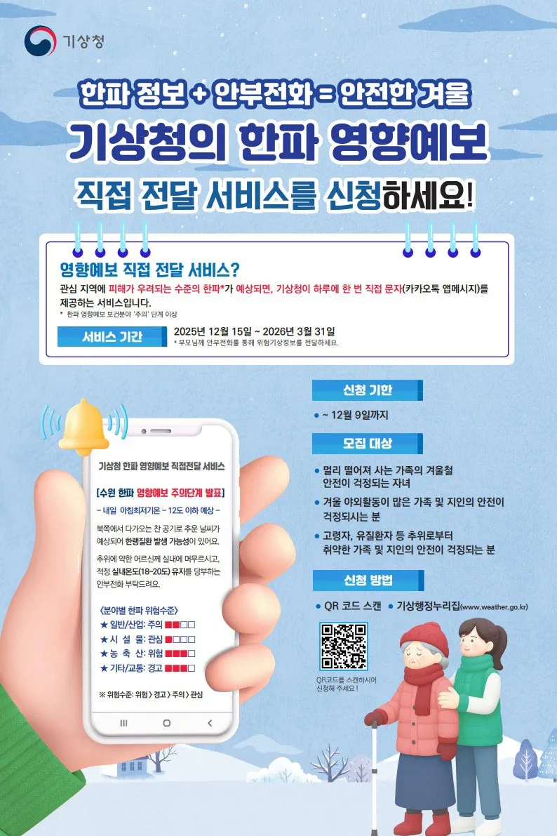 기상청 ‘한파 영향예보 직접 전달 서비스’예요.