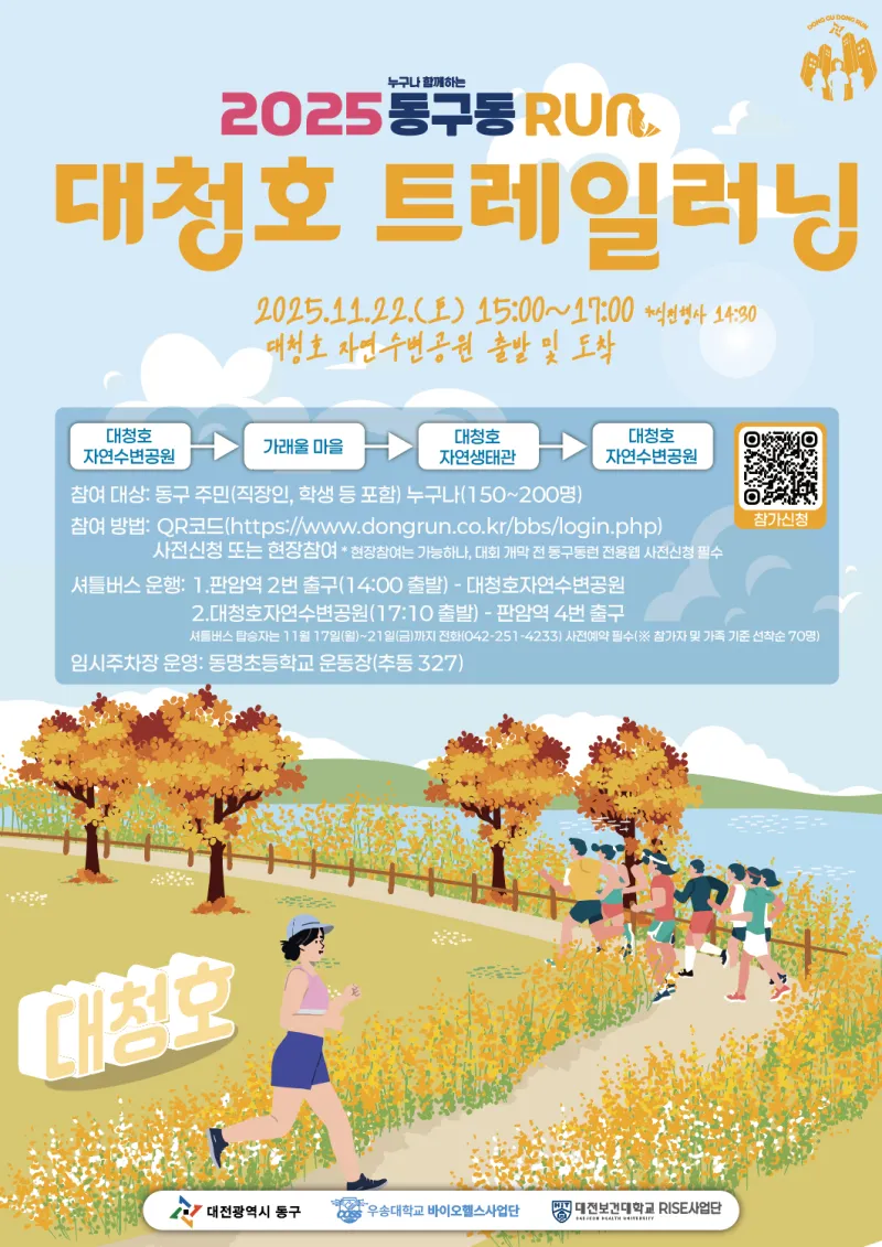 가을 대청호를 배경으로 함께 달려요! 2025 동구동런(RUN) 대청호트레일러닝 개최