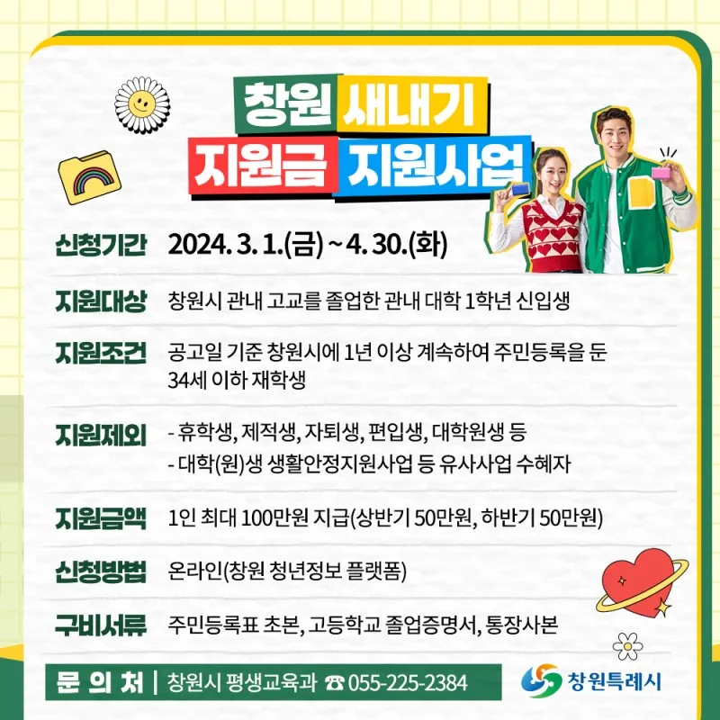 #창원 #창원시 #창원특례시 #새내기지원금 #대학생지원금 #신입생지원금 #청년정책 #청년지원사업 #대학지원사업
