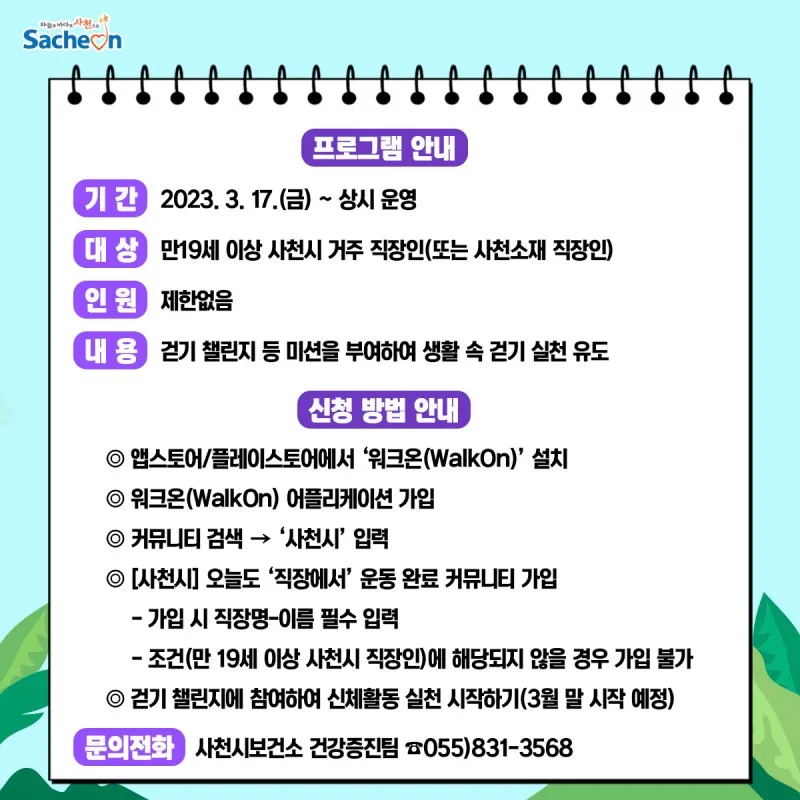 ✅ 문의전화: 사천시보건소 건강증진팀 ☎055)831-3568