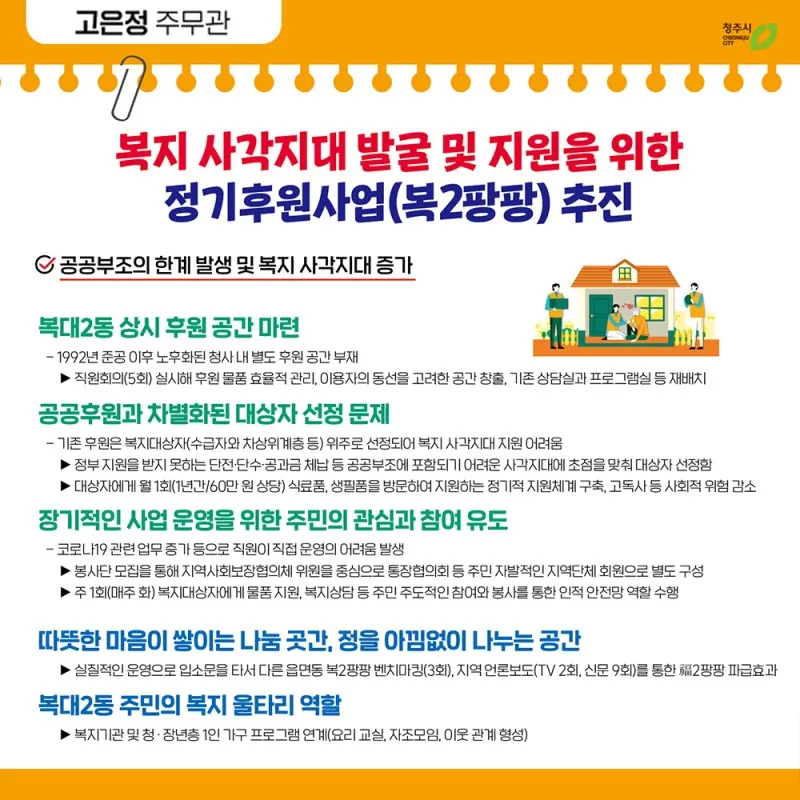 》》》 복대2동 주민의 복지 울타리 역할을 하였습니다.