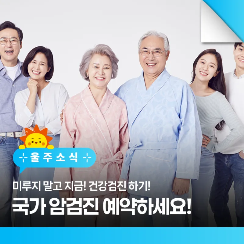 울주군이 암 검진을 통해 암 치료율을 높이고 암으로 인한 사망을 줄이기 위해 2025 국가암검진사업에 함께합니다. 내 건강을 지키는 가장 간단한 방법, 정기검진으로 시작하세요!