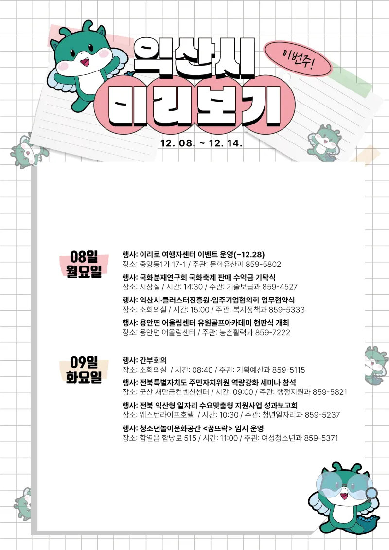 ???? 익산시 주간 주요 일정 (12.08. ~ 12.14.) ????