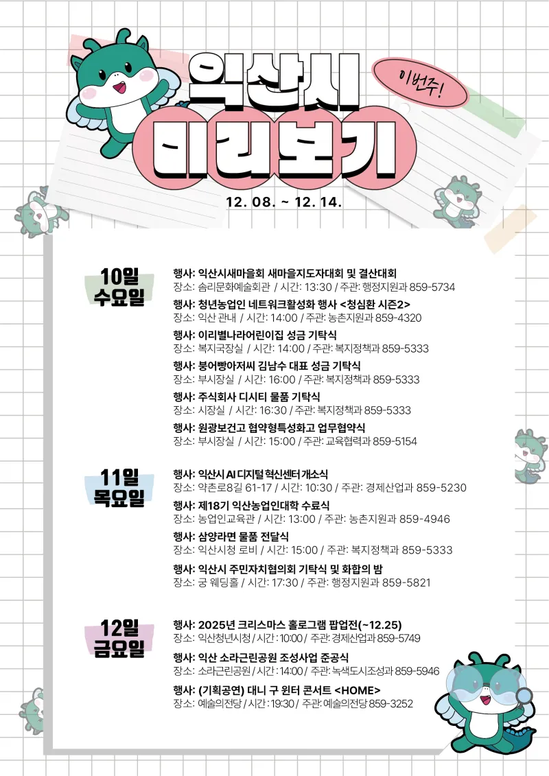 익산시 주간 주요 행사 12월 2주차 (2025. 12. 08. ~ 12. 14.)