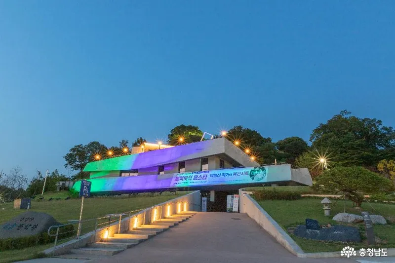 옥녀봉에서 강경포구 방향으로 내려서면 강경산소금문학관이 있습니다. 2021년 12월에 개관한 강경산소금문학관은 복합문화공간인 동시에 박범신 작가의 삶과 문학세계를 고스란히 전시하고 있는 문학관의 역할도 담당하고 있습니다. 개관 후 처음 마주한 강경산소금문학관의 야경이 아름답습니다.