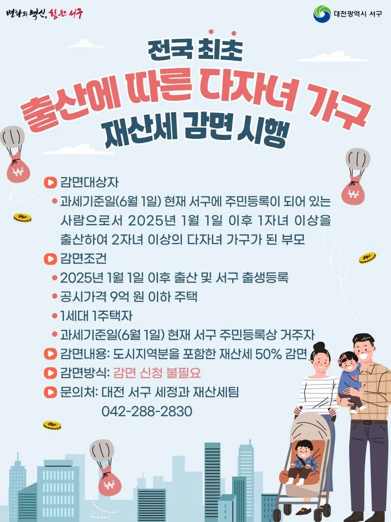 #대전서구 #서구청 #다자녀혜택 #재산세감면