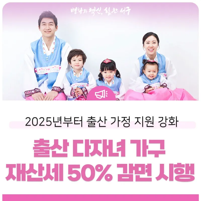 출산 다자녀 가구 재산세 50% 감면을 시행합니다!.🎉