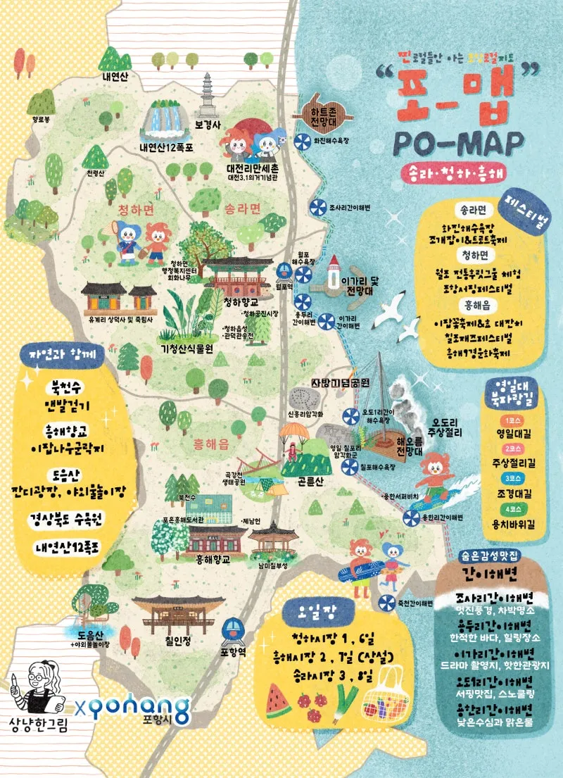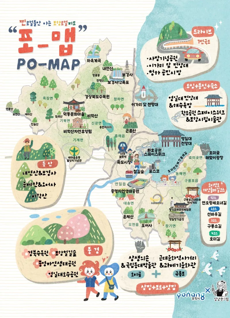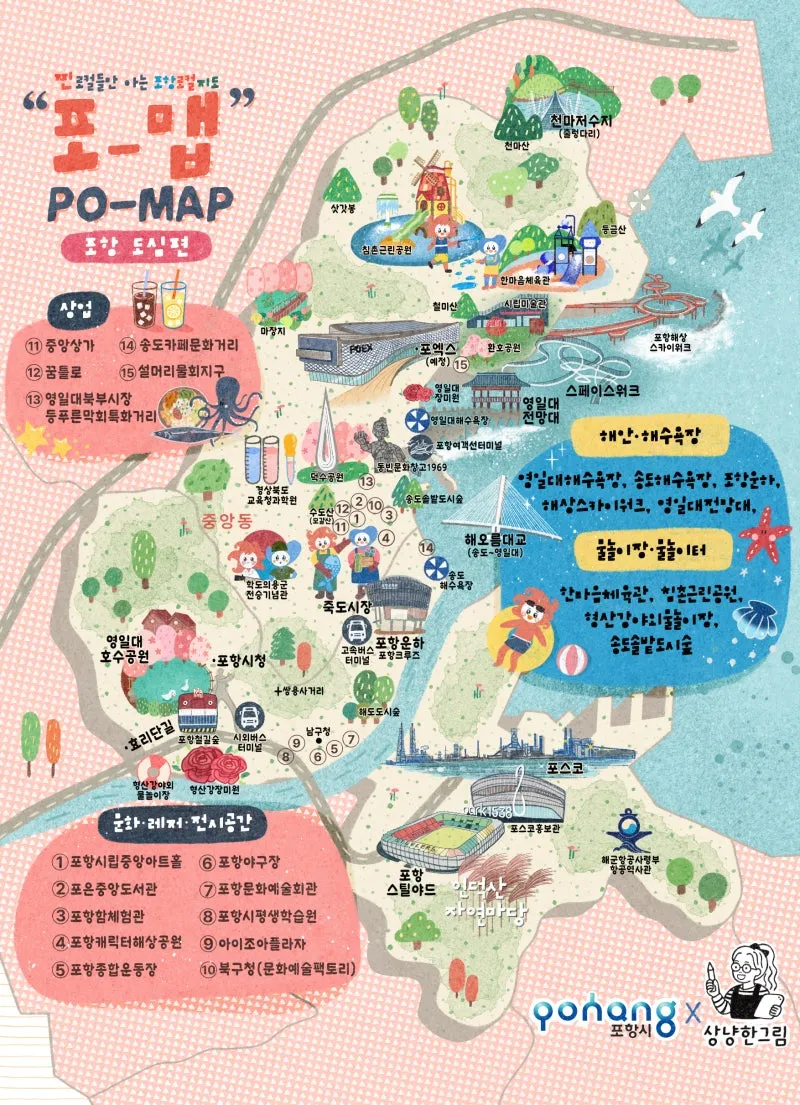 #포항여행 #포항가볼만한곳 #포맵 #포항지도 #포항여행지도 #감성지도 #포항핫플 #포항여행코스 #아이와가볼만한곳 #주말여행 #영일대 #스페이스워크 #포항운하 #꿈틀로 #연오세오 #상냥한그림 #pohang #포항