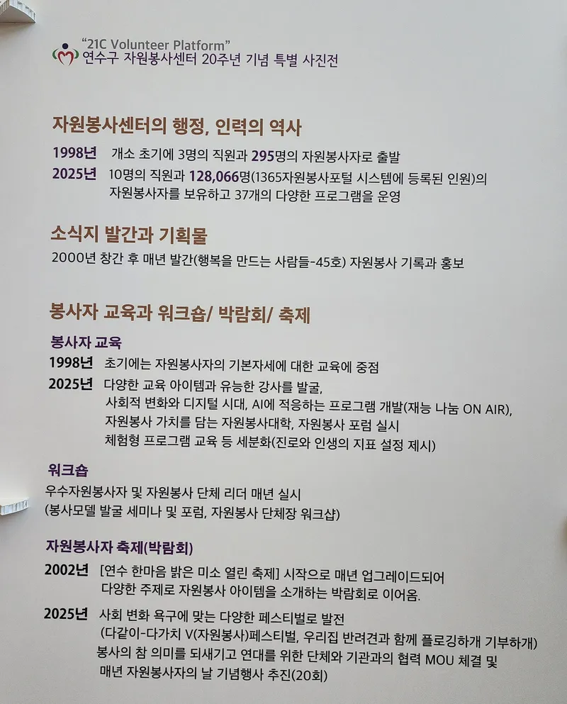 연수구 자원봉사자의 날 20주년 기념 특별 사진전