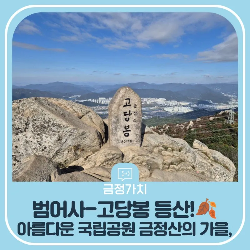 청명한 가을 하늘이 우리의 발걸음을 야외로 초대합니다. 지난 2025년 10월 31일, 금정산이 <우리나라 24번째 국립공원>으로 최종 발표 되면서, 많은 분들이 금정산을 방문하고 있는데, 오늘은 고당봉까지 이르는 최단코스를 여러분에게 소개드리고자 합니다.