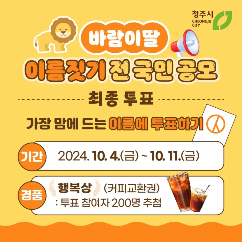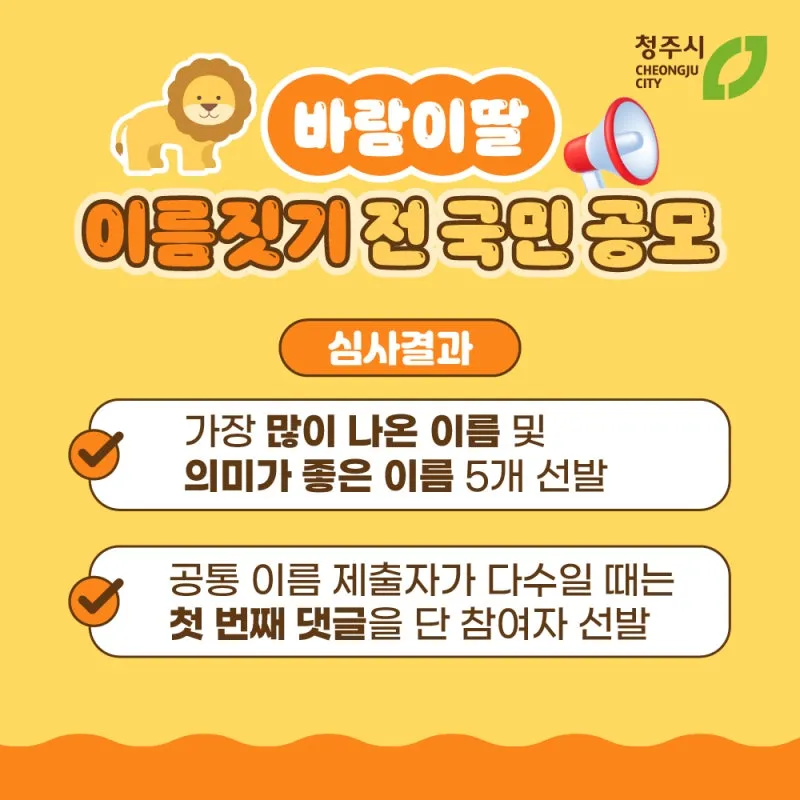 '바람이 딸 이름짓기' 공모전은 동물복지 선도도시로 나아가는 청주시가 야심차게 준비한 이벤트인데요~