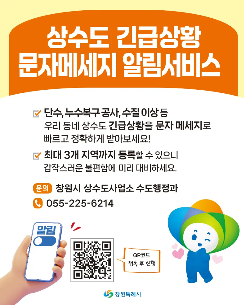 #창원특례시 #상수도알림서비스 #단수문자알림 #창원상수도 #누수복구안내