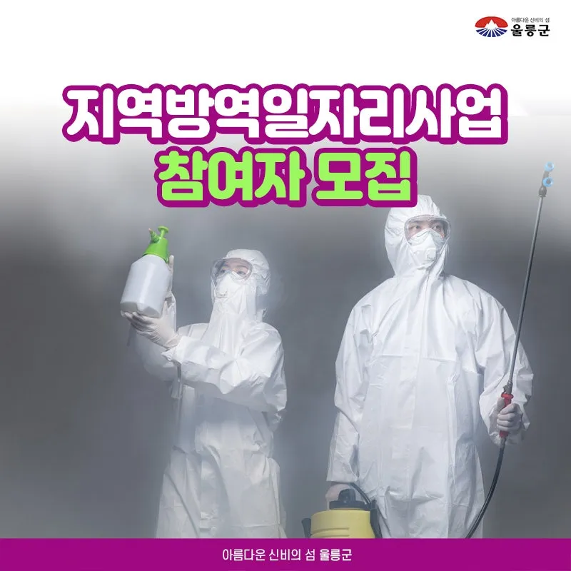 코로나19 확산 방지를 위한 방역을 강화하고 코로나 피해주민 및 취업취약계층에 일자리를 제공하고자 지역방역일자리사업 참여 대상자를 아래와 같이 모집하오니 관심있는 여러분의 많은 지원 바랍니다.