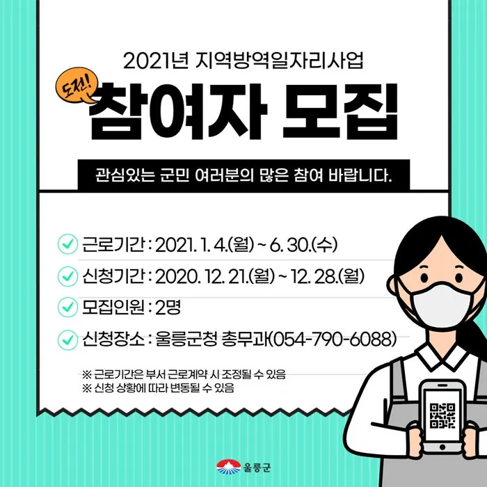 ◆ 신청장소 : 울릉군청 총무과(054-790-6088)