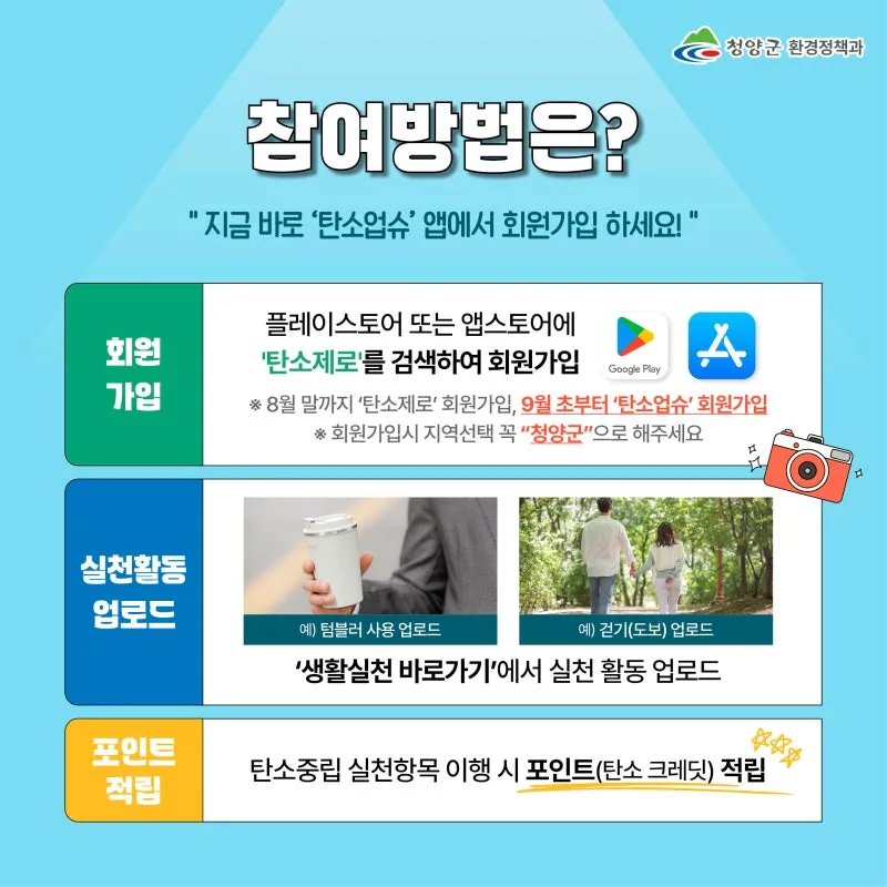 ‘탄소업슈’ 어플을 설치하면 도민 누구나 참여 가능합니다.