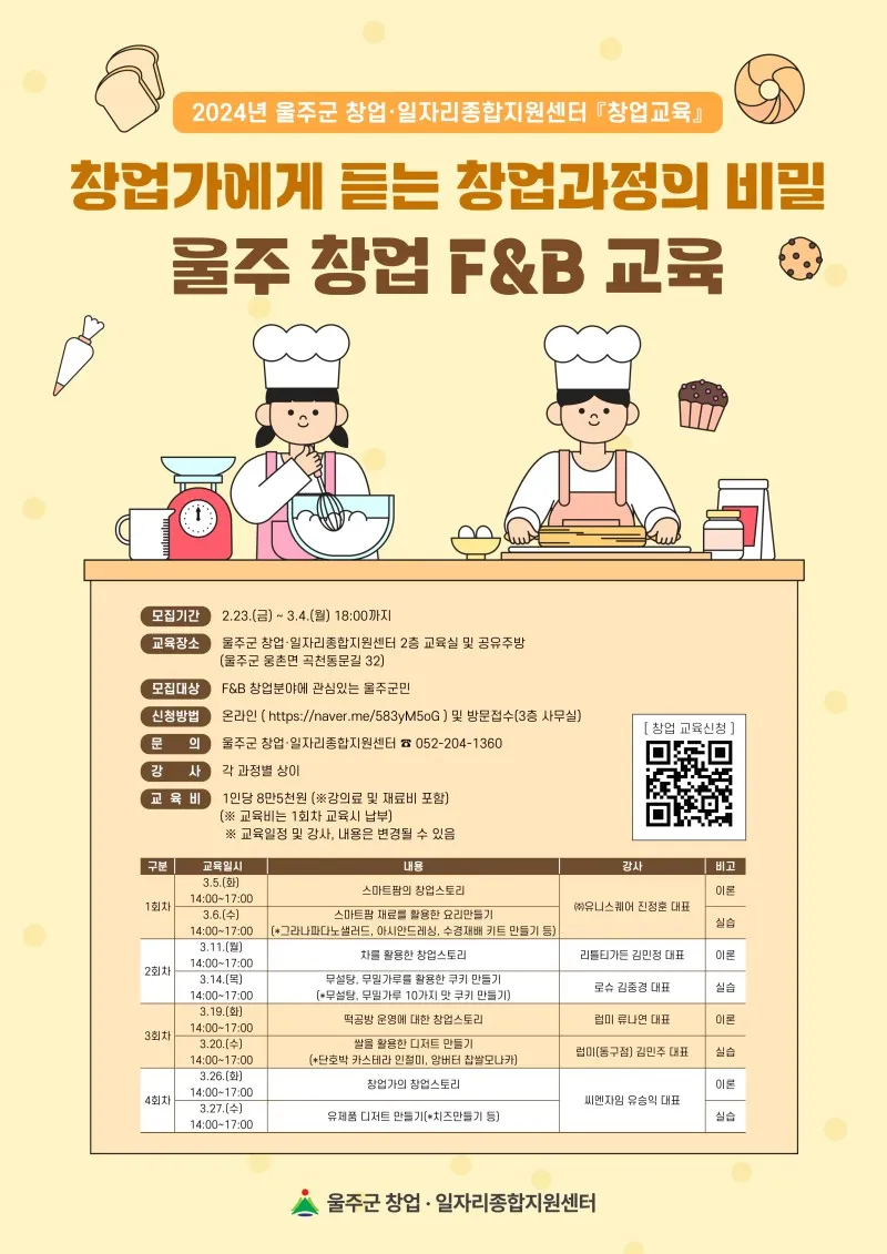 F&B 창업분야에 관심있는 울주군민