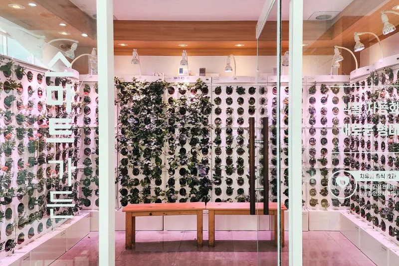 식물은 긴장 완화와 심신을 안정시켜주는 효과가 있으니 스마트 가든 안에 들어가 식물이 주는 좋은 기운을 느껴봐도 좋아요.