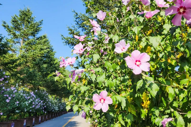 수목원에서는 무궁화도 자라고 있는데 매년 여름이면 커다란 화분에서 예쁘게 핀 우리나라꽃 무궁화를 만나볼 수 있어요.