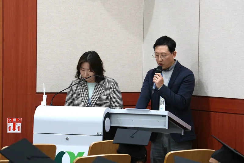 이날 수료식 전인 오후 2시부터 110분간 우송정보대학교 김영란 교수님의 "행복 전도사의 행복한 삶"이란 주제의 특강을 하였습니다. 특강이 끝난 후 잠시 휴식시간을 가진 후 오후 4시부터 수료식을 진행하였답니다.