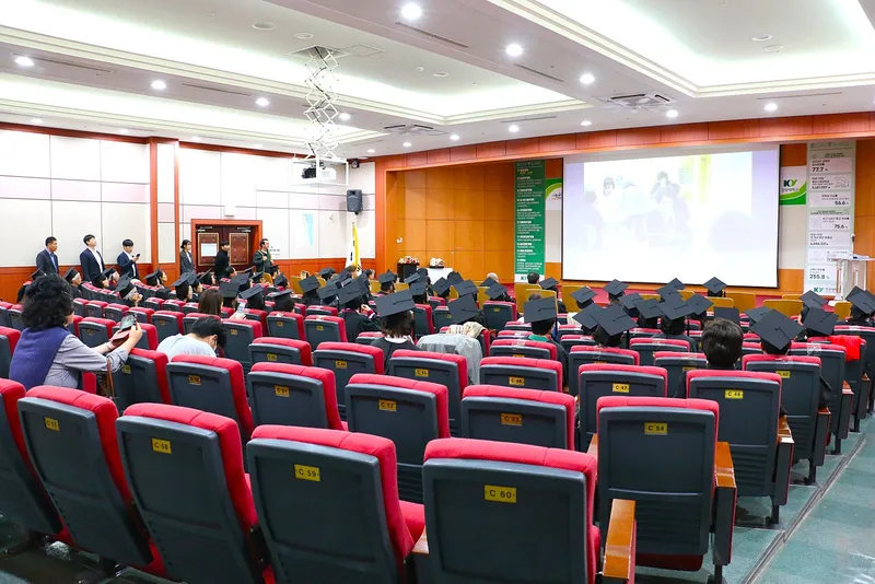 드디어 수료증 수여 시간입니다. 졸업가운과 학사모를 쓰신 수료생들은 한 분 한 분 단상 위로 올라가 수료증을 받으시면서 학사모의 수술을 이동하는 식을 하였습니다. 2024 행복문화대학은 각 분야별 교수, 기업 대표 등을 초빙하여 부동산 재테크를 위한 비법 접수, 가정 갈등 극복하기, 행복한 삶을 위한 건강관리법, 생활 속 인공지능 이야기, 뮤지컬 음악을 통한 인생 이야기 등 다양한 분야의 강의와 탐방 활동을 하였습니다.