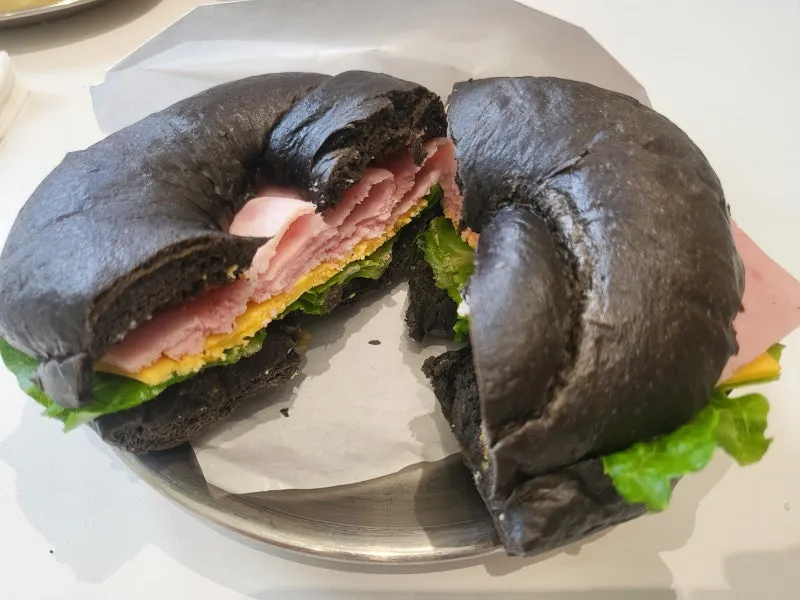 색이 까만 먹물 베이글을 베이스로