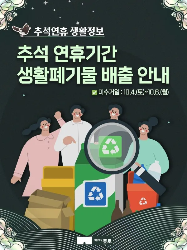 2025년 추석연휴 기간 생활폐기물 배출 안내