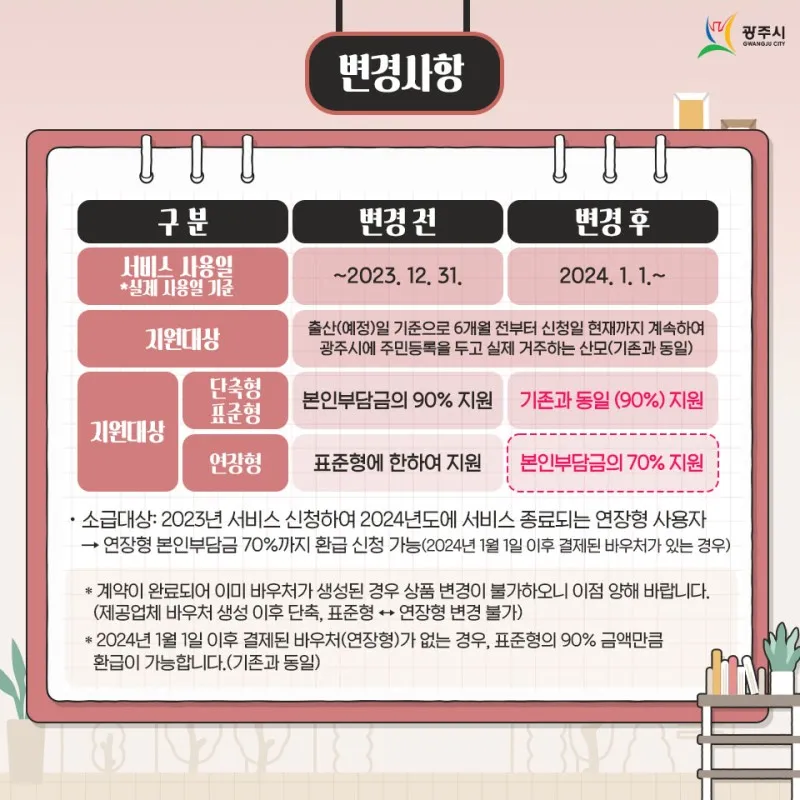 출산(예정)일 기준으로 6개월 전부터 신청일 현재까지 계속하여 광주시에 주민등록을 두고 실제 거주하는 산모(기존과 동일) |