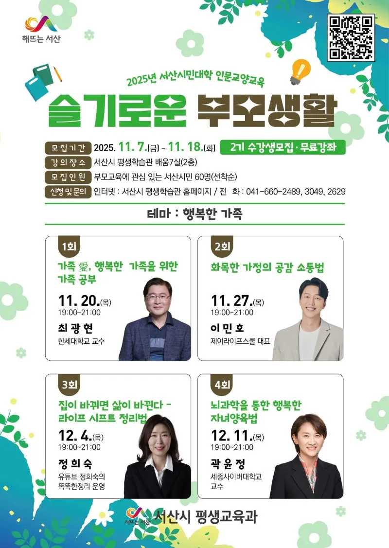 2025년 서산시민대학 슬기로운 부모생활 수강생 모집