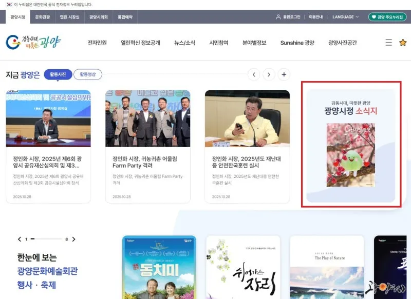1. 선샤인 광양, 계절마다 만나는 소식지