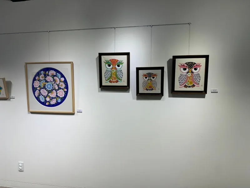 정은정 작가는 장수와 부의 상징인 부엉이를 통해 액막이 의미를 담았으며, 김옥주 작가는 학문을 숭상하는 정신을 강조한 작품을 선보이고 있다.