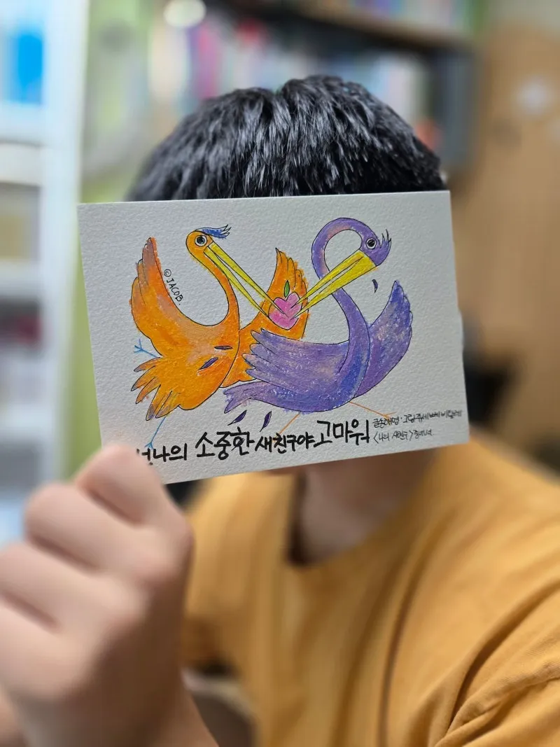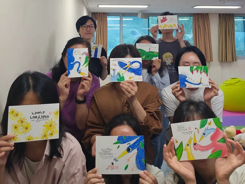 매주 수요일 10시 울주도서관에서 만나 그림책을 읽고 그림책 작가들을 연구하고 그림책을 토론하는 이야기 그림 공방 동아리는 무더운 여름에도 쉬지 않고 활동을 이어왔는데요. 여름방학에는 그림책 캘리 강사의 특강을 듣고 멋진 작품을 완성했다고 해요