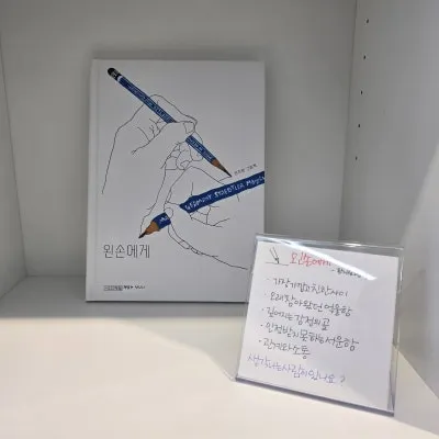 책방에 들어가지 않아도 밖에서도 전시를 감상할 수 있는 오픈형 전시랍니다.