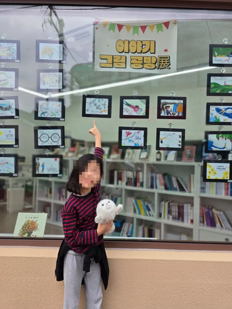 <이야기 그림 공방 > 전시는 사진 속에 보이는 통창에 전시가 되어있답니다. 그럼 다시 전시 소개로 돌아가 볼게요.
