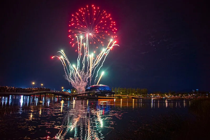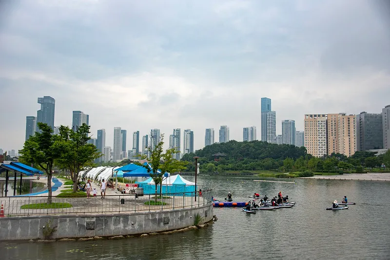 햇살 아래 호수 위를 유유히 떠다니는 패들보드, 곳곳에 피어난 꽃과 시원한 그늘, 어린이들의 웃음소리가 끊이지 않는 물놀이 시설 등이 곳곳에 있어 더위를 식히려는 사람들로 북적입니다. 밤에는 수상무대의 화려한 조명과 형형색색 분수, 때때로 열리는 축제와 불꽃놀이 등이 또 다른 매력을 선사하죠.