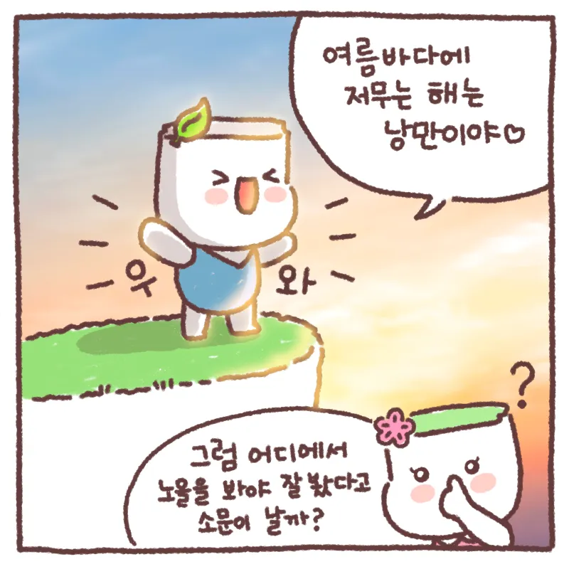 웰로2년 전[해남 일상툰] 땅끝이와 희망이의 일상툰 8화 이 블로그 해남 일상툰 시즌2 카테고리 글 이전 이전 다음 다음 {"title":"[해남 일상툰] 땅끝이와 희망이의 일상툰 8화","source":"https://blog.naver.com/haenamgunpr/223197381777","blogName":"한반도의 ..","blogId":"haenamgunpr","domainIdOrBlogId":"haenamgunpr","logNo":223197381777,"smartEditorVersion":4,"meDisplay":true,"lineDisplay":true,"outsideDisplay":true,"cafeDisplay":true,"blogDisplay":true} #땅끝탑#국내노을맛집#땅끝탑스카이워크#해남가볼만한곳#땅끝이#희망이#해남일상툰#해남툰#인스타툰#illustration#illust#cartoons#만화출처:https://blog.naver.com/haenamgunpr스크랩