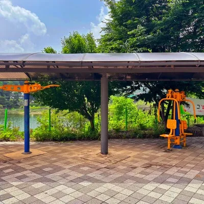 호수 주변에 이렇게 운동기구도 있어서