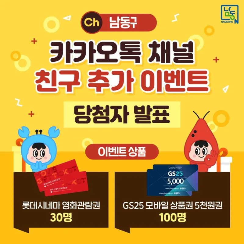 남동구 카카오톡 채널 친구 추가 이벤트 당첨자 발표