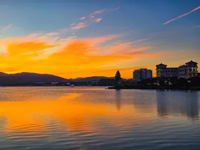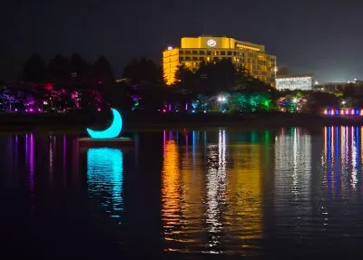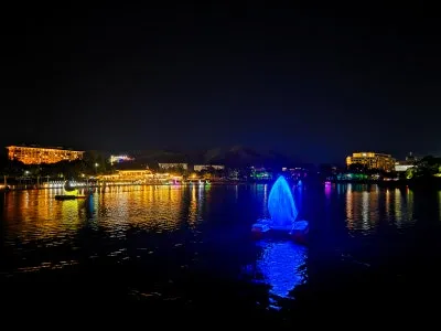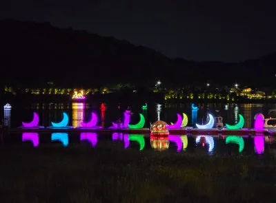 호수 위로 번져가는 조명 빛과