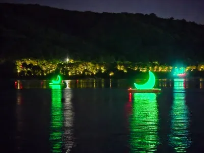 호수 위를 은은하게 밝히며 움직이는 모습은
