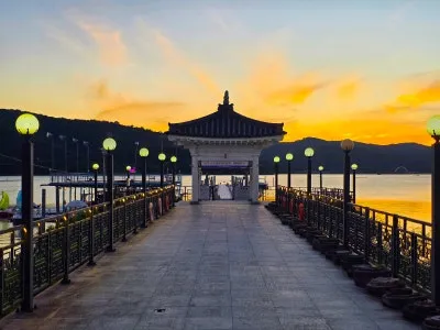 일몰 무렵 보문호에 도착하면