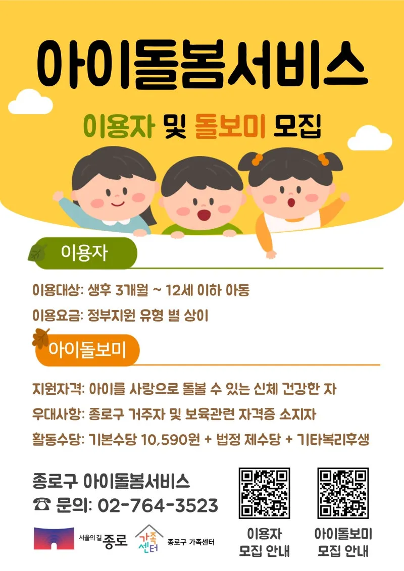 종로구 신규 아이돌보미 및 아이돌봄서비스 이용자 모집