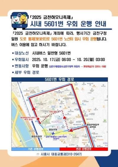 (금천구종합청사, 금천구청역 미정차 -> 롯데캐슬2차 정류소 이용)