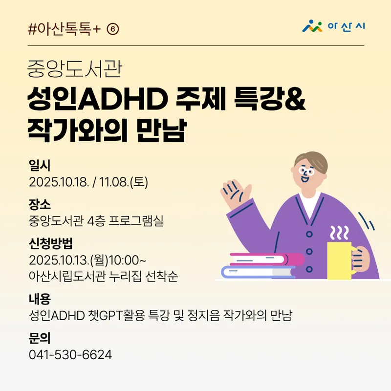 신청 : 2025.10.15.(수)10:00~ 아산시립도서관 누리집 선착순
