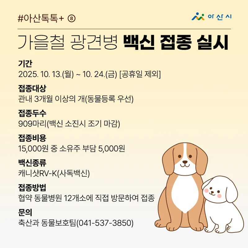 접종 대상: 관내 3개월 이상의 개(동물등록 우선)
