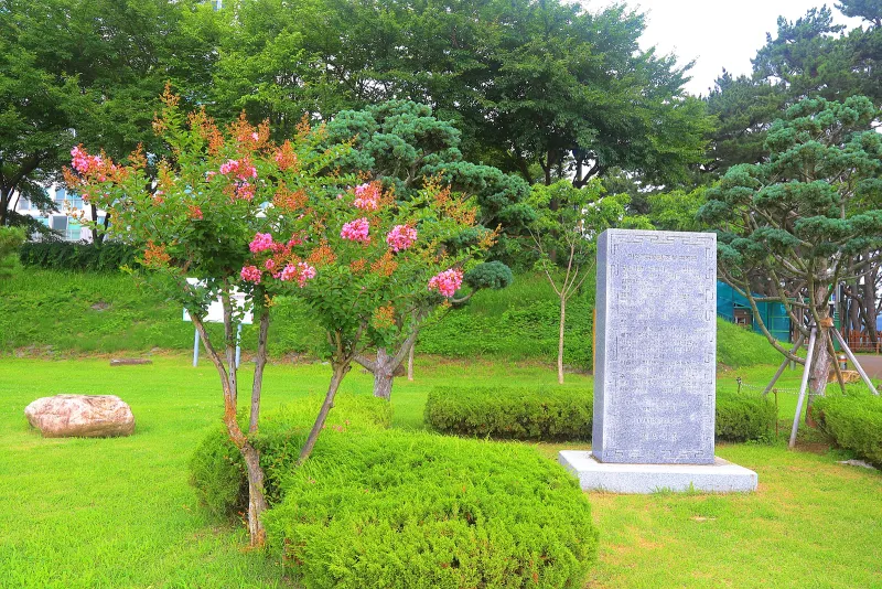밀양댐 공사로 수몰되는 단장면 고례리 농암대의 자연석을 옮겨와 선사시대의 거식 문화유물인 선돌 형식으로 꾸며서 조성해 놓았습니다.