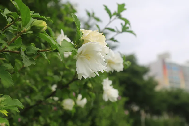 꽃의 빛깔은 흰색, 분홍색, 연분홍색, 보라색, 자주색, 청색 등이 있으며, 무궁화 꽃말은 사랑에 깊이 빠지다, 미묘한 아름다움이라고 합니다.
