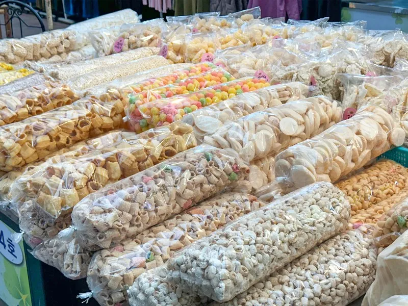 그 외에도 요즘은 재래시장에서나 구경할 수 있는 뻥튀기도 한가득 있었는데요.